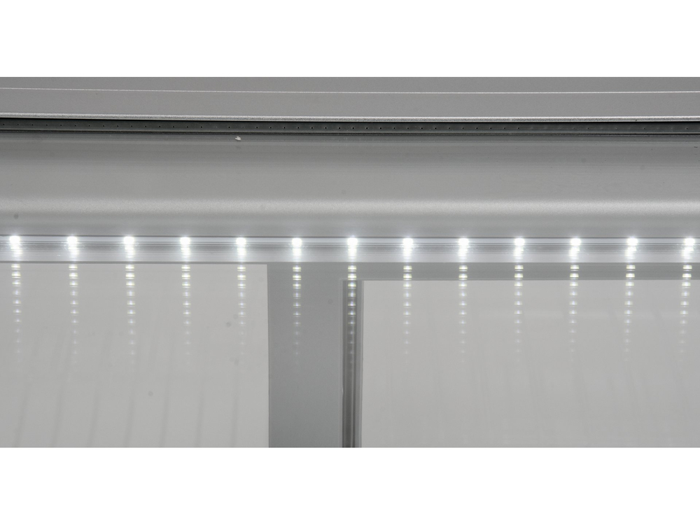 Vitrina reglabilă YATO cu o capacitate de 120L în argint. Vitrina frigorifică marca YATO este destinată afișării prăjiturilor, prăjiturilor, cocktail-urilor sau a diverselor tipuri de băuturi. Designul modern combinat cu calitatea înaltă a materiilor prime înseamnă că vitrina frigorifică YATO este perfect prezentată pe față în toate tipurile de cofetării, cafenele, restaurante și magazine comerciale. În plus, iluminarea cu LED instalată expune mâncărurile prezentate într-un mod foarte atractiv încurajând clienții să le aleagă. Extensia frigorifică YATO are o capacitate de 120L și are două rafturi reglabile în înălțime cromate . Accesul la ele se face prin intermediul unei uși glisante. Sunt confecționate din sticlă temperată, la fel ca parbrizul rotunjit panoramic. Aceasta asigură o rezistență ridicată și, în același timp, proprietăți izolatoare foarte bune. Amplasamentul funcționează în intervalul de temperatură 0 ~ + 12 ° C cu ajutorul agentului frigorific R600a. Pe de altă parte, tehnologia de răcire statică aplicată cu duza superioară a aburului și funcția de decongelare automată asigură o muncă foarte eficientă și, în același timp , economisește energie. Extensia este controlată cu ajutorul unui controler electronic cu afișaj de temperatură.