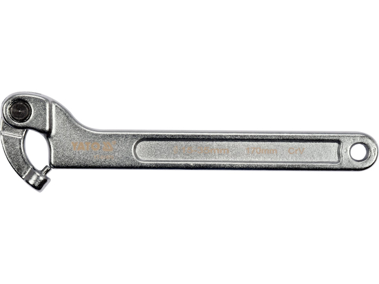 Cheie universala cu cârlig si stift rotund , YT-01675. Fabricata din oțel CrV, finisaj cromat mat. Pentru flanse, rulmenti si roti.