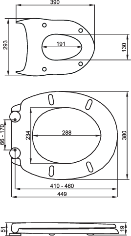 - datorită reglării excentrice a scaunului, placa poate fi adaptată cu ușurință la majoritatea bolurilor de toaletă, atât compacte cât și agățate