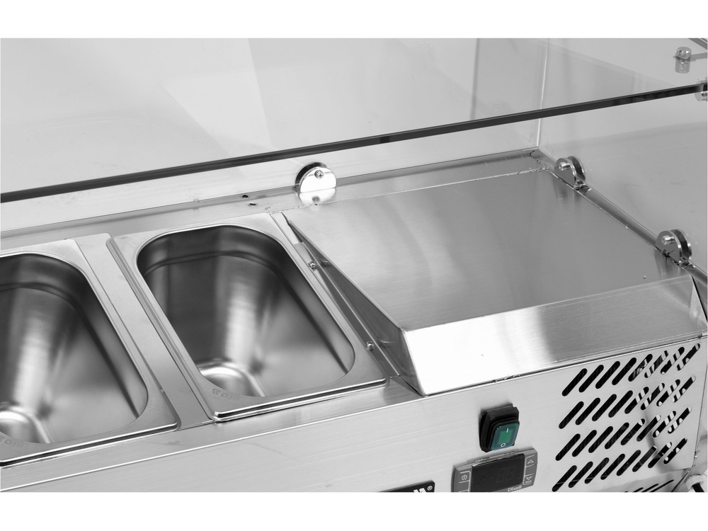Vitrina frigorifică YATO, montată în vârf, menține temperatura corectă a ingredientelor depozitate pentru prepararea vaselor: pizza, salate, sandwich-uri, etc. Cu toate acestea, designul modern combinat cu calitatea înaltă a materiilor prime înseamnă că vitrina frigorifică YATO arată excelent pe față în toate tipurile de restaurante, pizzerii, baruri sau hoteluri.
