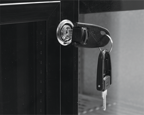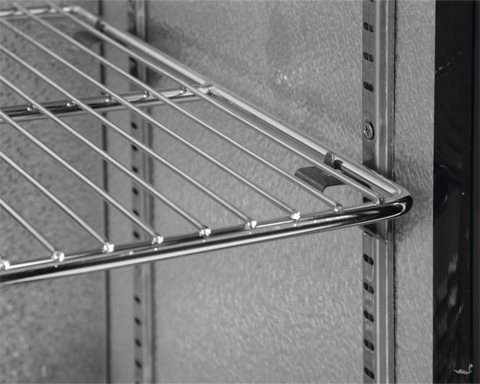 Dulapul frigorific are 2 uși glisante din sticlă călită, echipate cu o cheie de blocare pentru a proteja conținutul împotriva furtului. In interior sunt instalate 4 rafturi cromate cu o capacitate maximă de 40 kg - cu încărcătură uniformă.