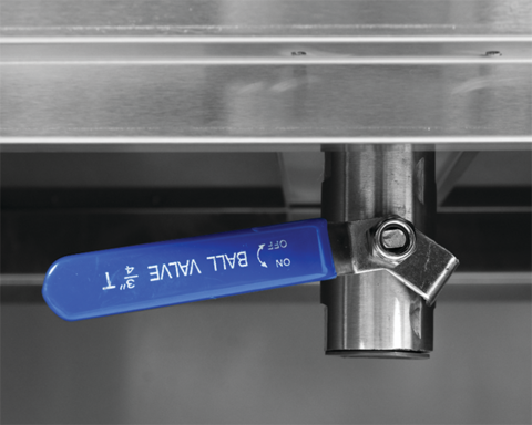 Friteuza independentă are un dulap suplimentar de dedesubt, 370x315x390mm , cu ușă închisă. În interiorul dulapului, la o înălțime de 32cm, există un robinet de scurgere care permite drenarea rezervorului de ulei. Aceasta este o funcție deosebit de utilă, datorită căreia uleiul este schimbat foarte repede. În plus, permite scurgerea uleiului vechi direct în recipient, reducând astfel riscul de deversare. Dulapul este montat pe patru picioare cu reglarea înălțimii în intervalul 13,5 ~ 16cm.