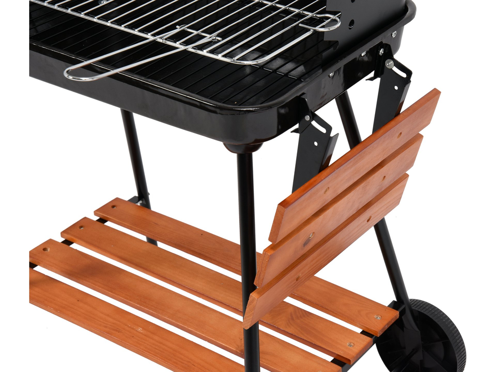 - 2 rafturi laterale pliabile din lemn și un raft spațios în partea inferioară, pentru farfurii, ustensile de grătar etc.