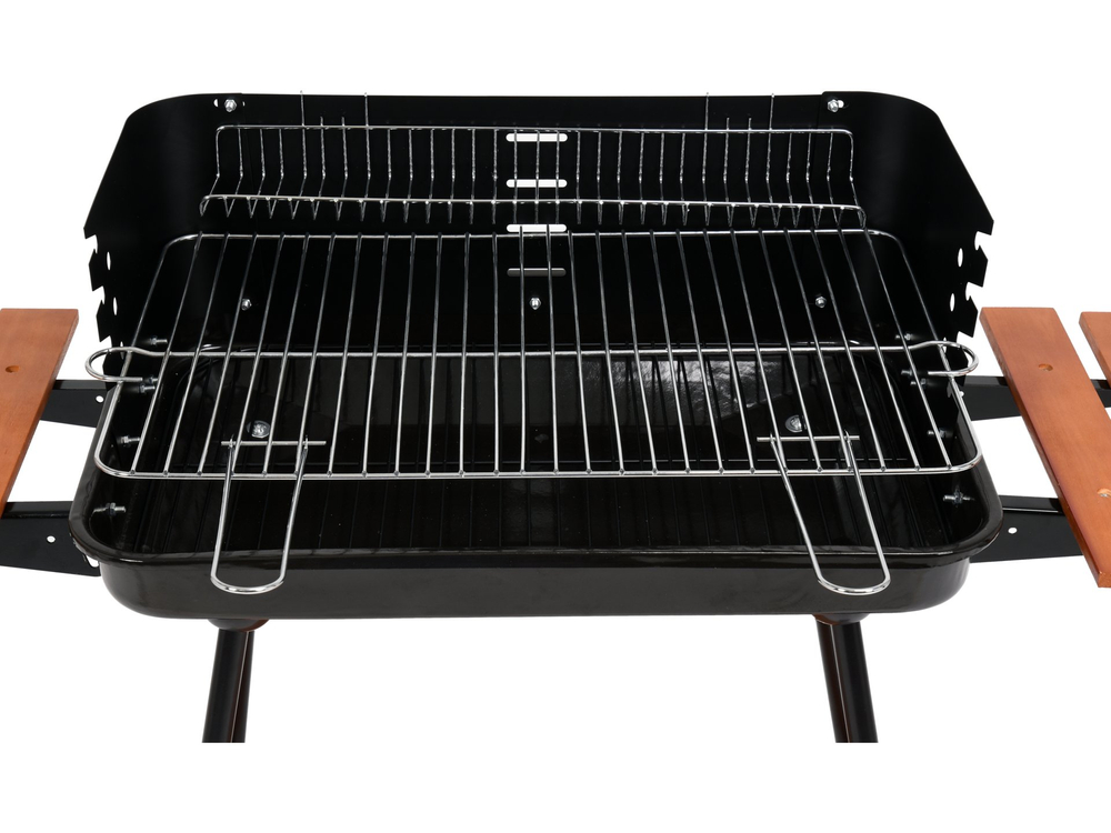 - 99589 - GRĂTAR 53X33CM - Grătar de grădină LUND pentru pregătirea mâncării în aer liber cu grătar reglabil și roți pentru transport ușor. Rafturile