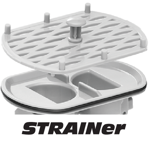 - STRAINer - o sită eficientă și durabilă, care împiedică înfundarea sifonului și facilitează funcționarea continuă a scurgerii;