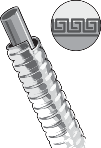 - împletitură din oțel inoxidabil lustruit