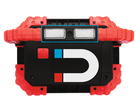• 2 magneți în suport permit lampa să fie fixată pe o suprafață de oțel