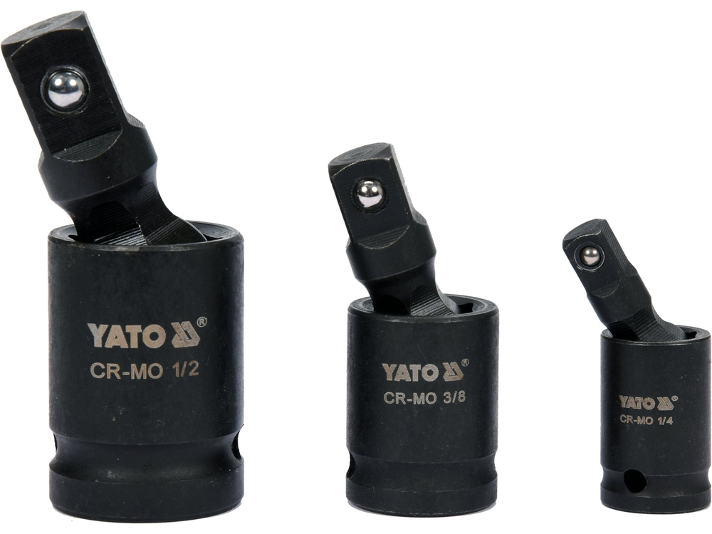 - YT-10643 - SET ARTICULAȚIE CARDANICĂ IMPACT 1/4 3/8 1/2 - Yato - Set adaptoare cu articulatie. Adaptoarele cu articulatie sunt utilizate oriunde