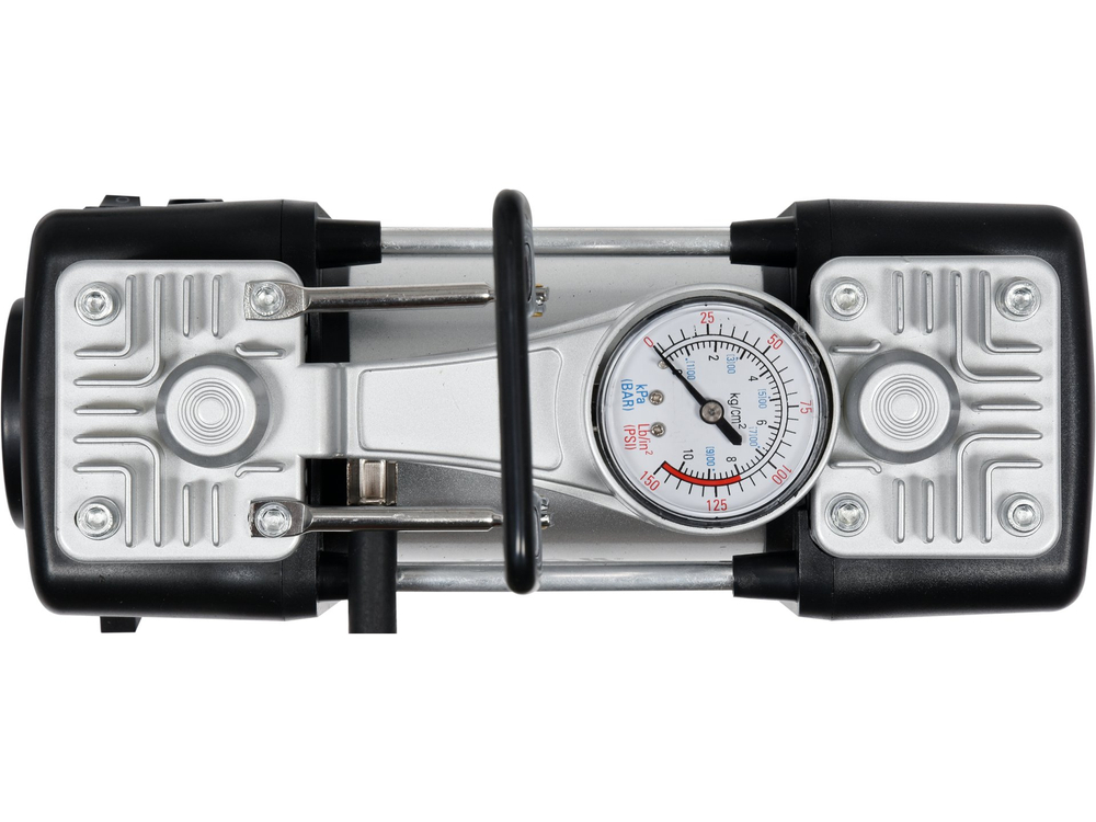 Compresor puternic, cu manometru precis, cu o tensiune de alimentare de 12-13,8 V. Proiectat pentru umflarea roților și a camerelor de aer echipate cu supapă de mașină, motocicletă sau bicicletă, precum și - cu ajutorul vârfurilor înlocuibile - saltele, bărci gonflabile, mingi. Capacitatea de a extrage energie direct din bateria mașinii permite pomparea cu mai multă putere decât compresoarele tradiționale conectate la priza brichetei din mașină.
