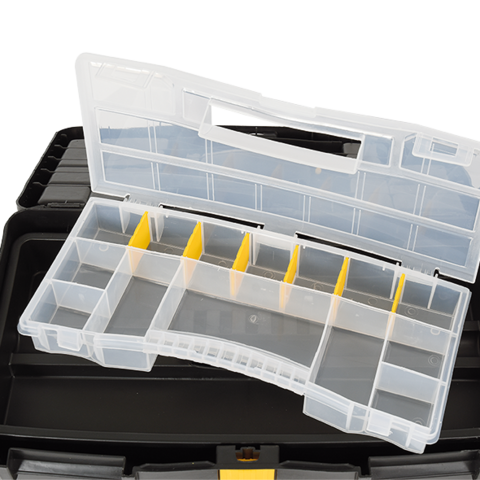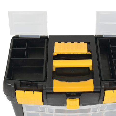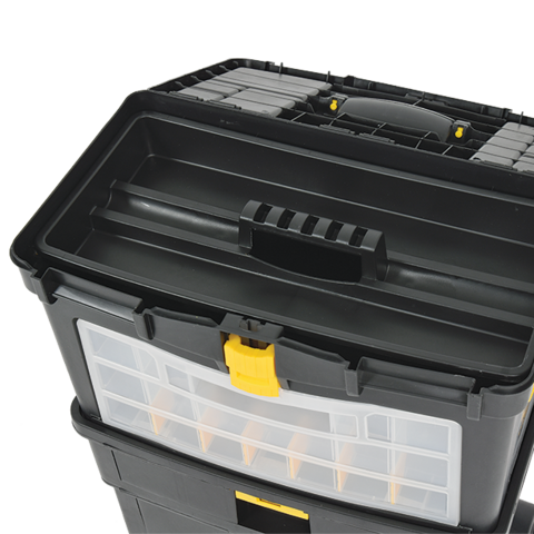 Cutie de scule tip troller cu 3 segmente pentru depozitarea sculelor și accesoriilor mici.