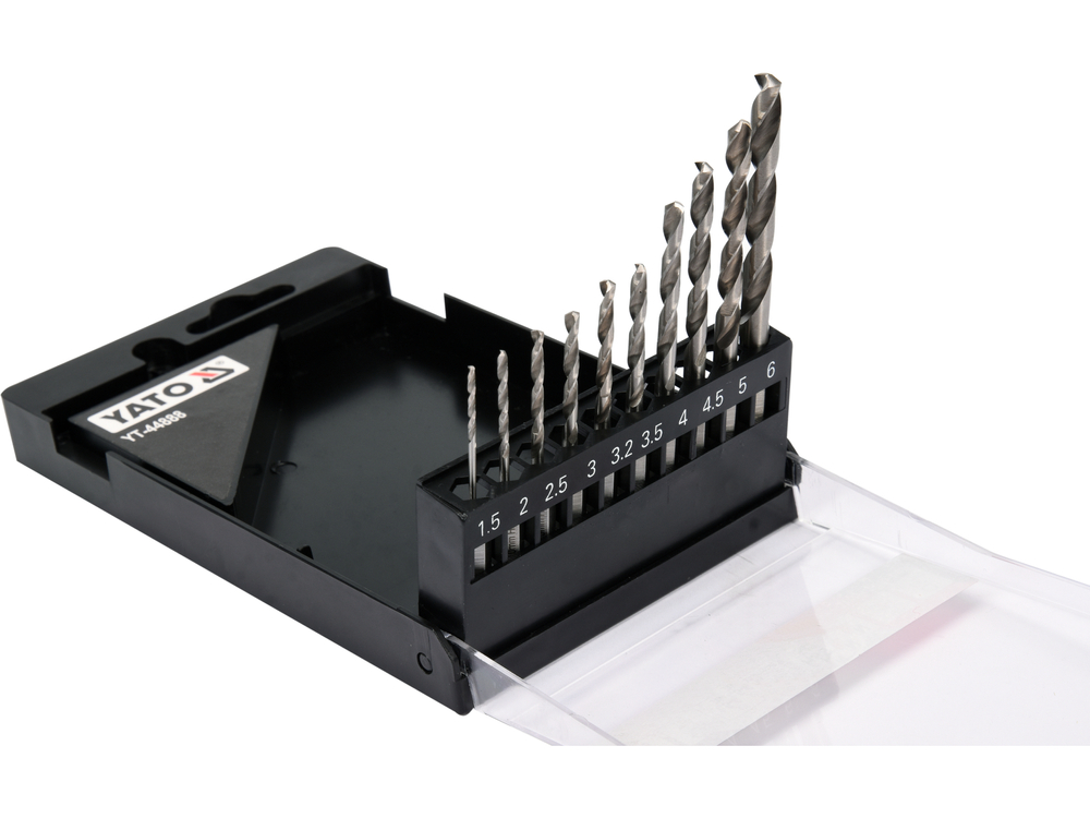 Setul include 10 burghie HSS cu diametrele: 1.5, 2.0, 2.5, 3.0, 3.2, 3.5, 4.0, 4.5, 5.0, 6.0 mm, ambalate într-o cutie practică