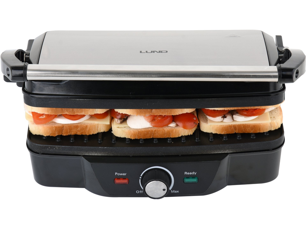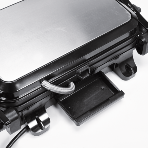 Grătar electric puternic conceput pentru prepararea rapidă a cărnii, a peștelui, a legumelor și a prajitului . Funcția de reglare a plăcilor de încălzire vă permite să le reglați la înălțimea produselor prăjite. Un avantaj suplimentar al dublării suprafeței de grătare este capacitatea de a o răspândi la 180 de grade.
