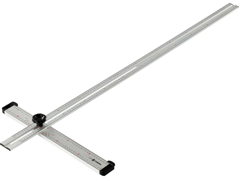 Brațele au o lungime de 1200 x 320 mm, cu o scară milimetrică pe toate marginile, brațele mobile sunt conectate printr-un buton de blocare. Capetele brațelor sunt fixate cu dopuri din plastic. Marcajele unghiulare sunt marcate pe suprafața barei unghiulare. Fabricat din aluminiu durabil și ușor.