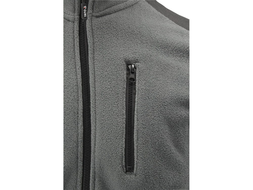 - Geacă de lână groasă YT-79522 cu trei buzunare și garnituri suplimentare din țesătură rezistentă la abraziune pe coate și umeri. Materialul principal este un poliester gros și durabil care menține efectiv corpul cald, în special în zilele reci