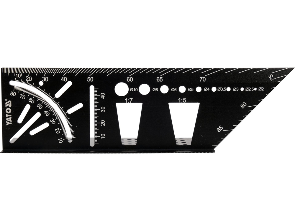 Un fierastrau spatial realizat din aluminiu, destinat lucrărilor de tâmplărie. Pe margini are marcaje milimetrice aplicate. Fierastraul include șabloane folosite în tâmplărie cum ar fi coada de rândunică, șabloane pentru găuri, un unghiometru și altele.
