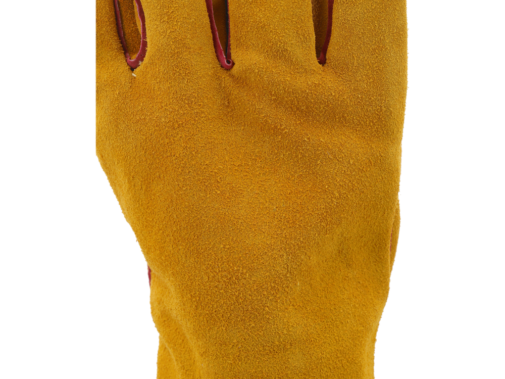 Mănuși de sudură tip A. Confecționate din piele de bovină licrată, cu căptușeală din tricot de bumbac și cusături sudate. Pielea groasă de bovină protejează eficient mâinile și încheieturile împotriva stropirilor fine de metal topit, arsurilor rezultate din contactul scurt cu flacăra sau împotriva pericolelor mecanice. Tricotul din interiorul mănușilor îmbunătățește confortul în timpul lucrului și oferă o protecție suplimentară împotriva căldurii de contact. Cusăturile sudate rezistă la contactul cu stropirile rezultate în timpul sudurii. Recomandate pentru sudură cu metoda MMA sau MIG/MAG.