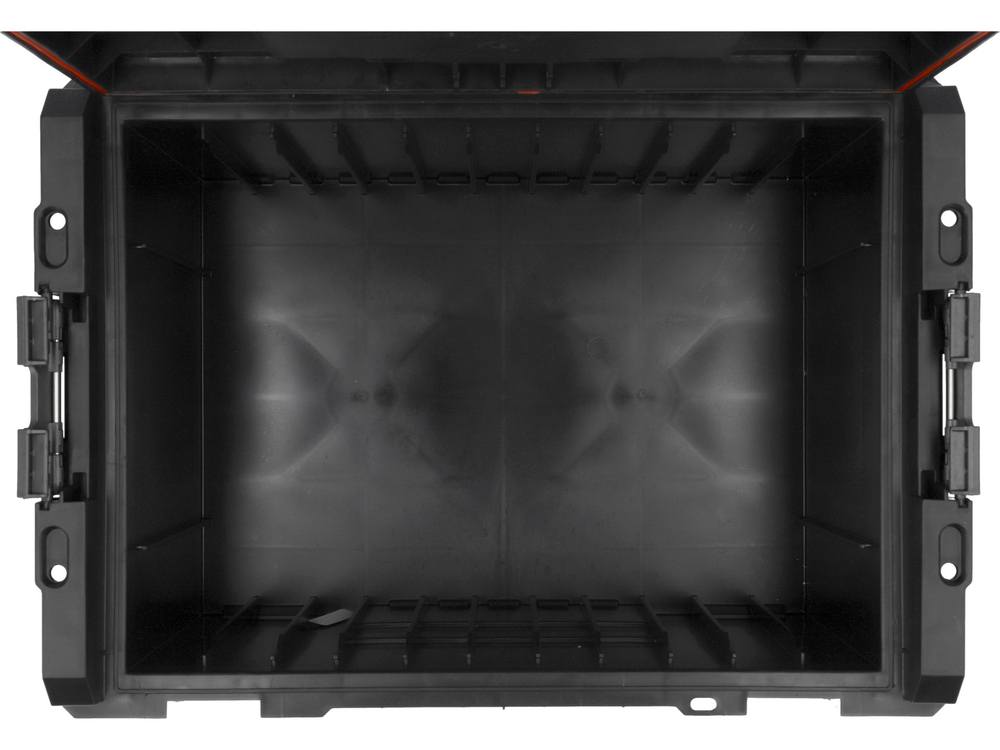 Garnitura elastică montată în capac asigură impermeabilitate, protejând conținutul de stropire și praf. Cutia este echipată cu un capac durabil din policarbonat, mânere ergonomice, conectori laterali din poliamidă.