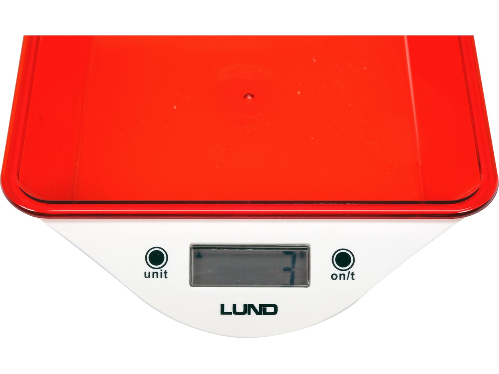 Cantar de bucatarie LUND cu bol cu o capacitate totala de 800 ml si o incarcare maxima de 5000g. Echipat cu un afisaj LCD clar care arata 4 unitati de masura disponibile si indicatoare pentru supraincarcare si nivel scazut de baterie. Un avantaj suplimentar este posibilitatea de a scoate si spala bolul in masina de spalat vase.
