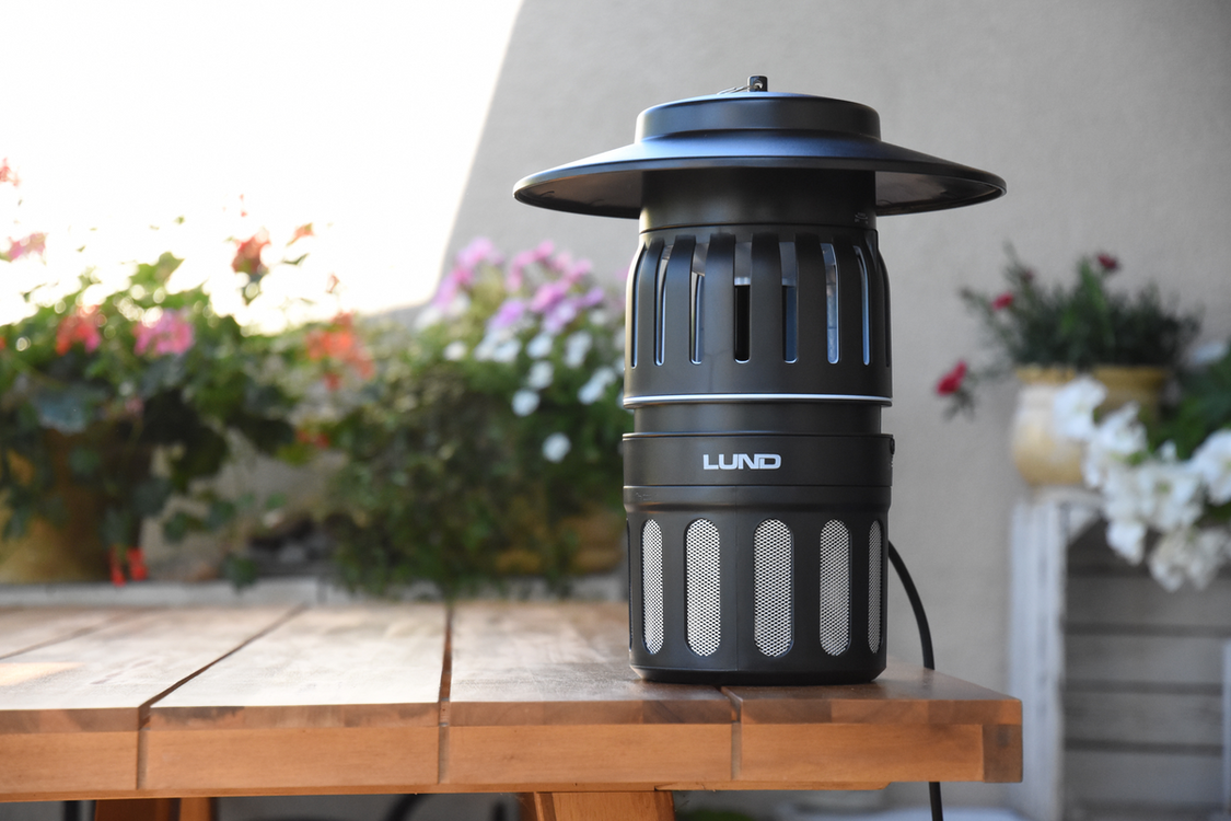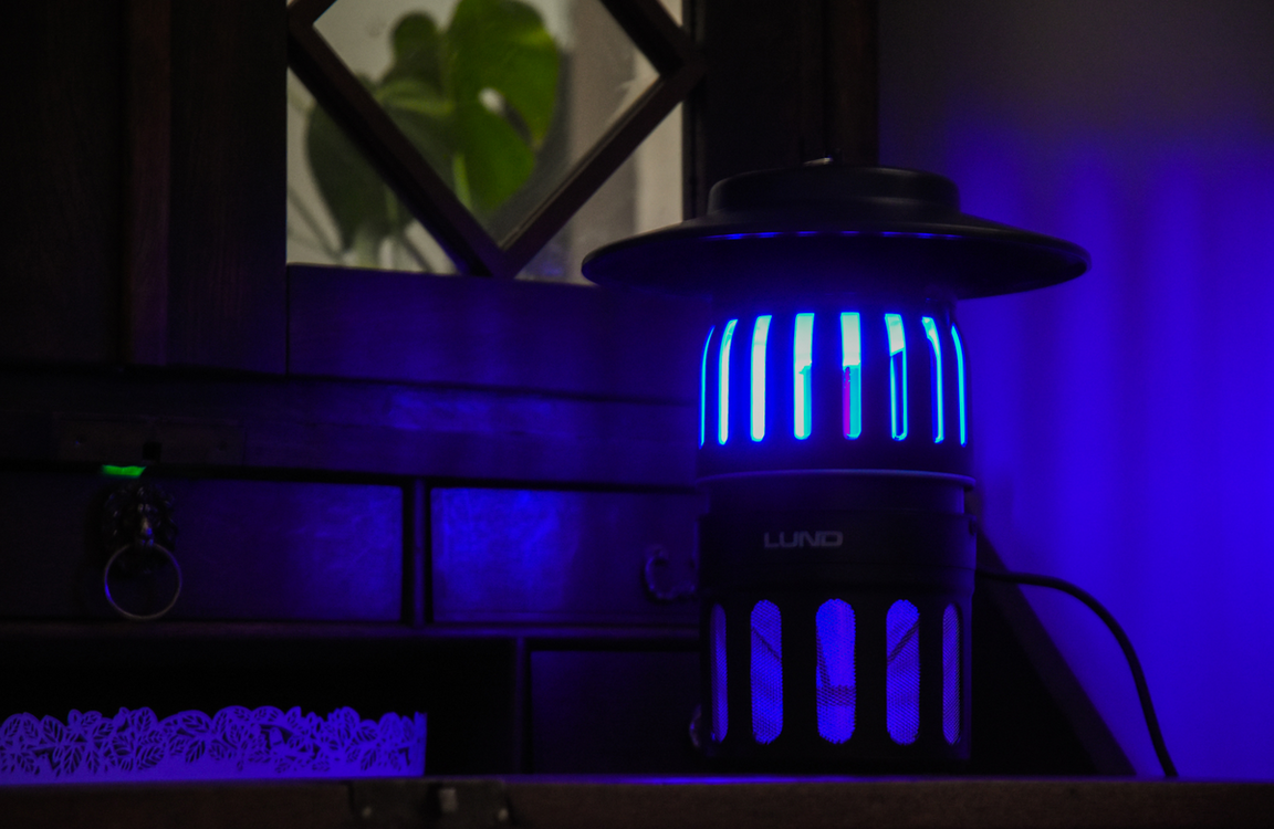 Lampa cu ventilator atrage și prinde insectele zburătoare precum țânțarii, muștele, viespile, molii și altele. Dispozitivul utilizează becuri puternice cu o lungime de undă de 365 nm și acoperă o suprafață de până la 300m2 în grădină. Clasa de rezistență la apă IPX4 permite utilizarea produsului atât în casă, cât și în grădină. După ce sunt atrase înăuntru de ventilator, insectele sunt reținute într-un container cu un con unic care blochează orice șansă de evadare. Un alt avantaj este lanțul pentru agățare și cablul rezistent de 3m