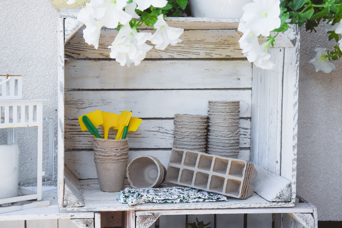 tavă x5 (fiecare 2x5 goluri de 30x30 mm), ghiveci x38 (Ø8 mm), identificator x15, tavă mare din plastic x2, mănuși, aplicator