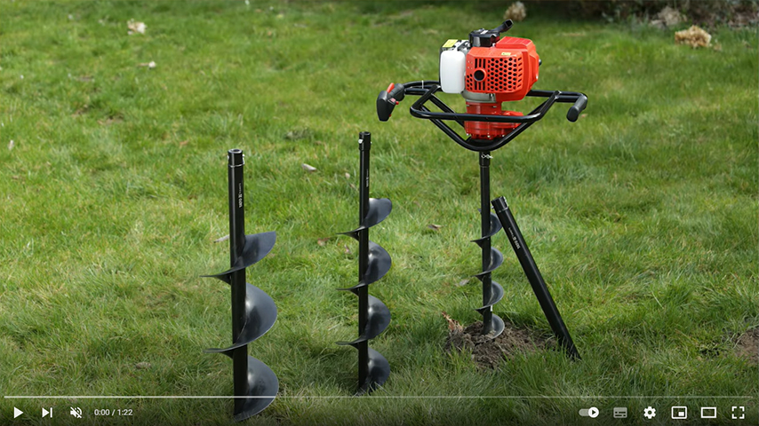 O instalație de foraj utilă în cazul lucrărilor din grădină - pentru forarea găurilor pentru copaci și arbuști, precum și în lucrările de construcții - pentru forarea găurilor pentru stâlpii de gard și foișoare. Dispozitiv conceput pentru a fi operat de un singur utilizator.