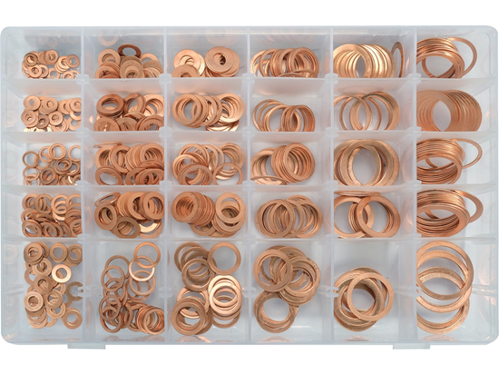 Set care conține 580 bucăți de șaibe din cupru de diferite dimensiuni: