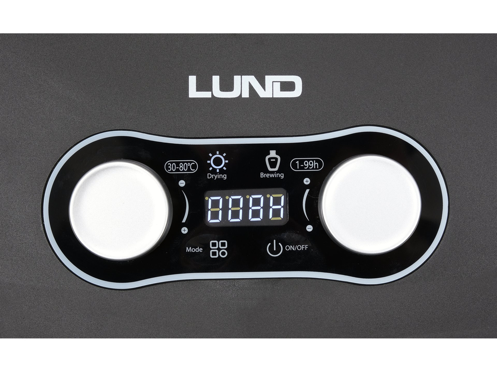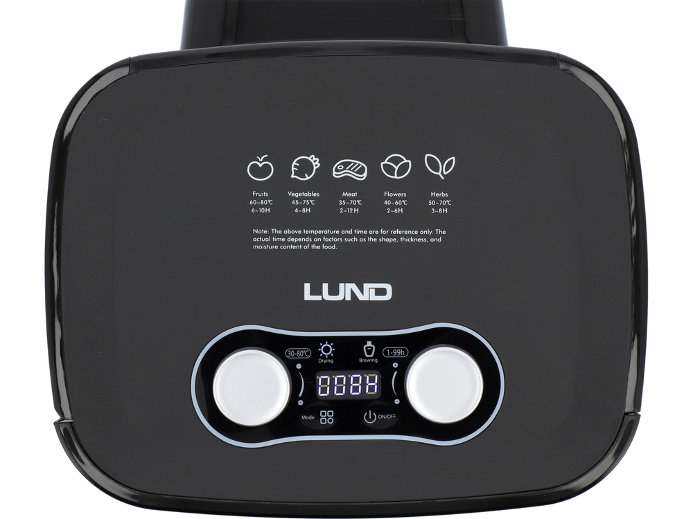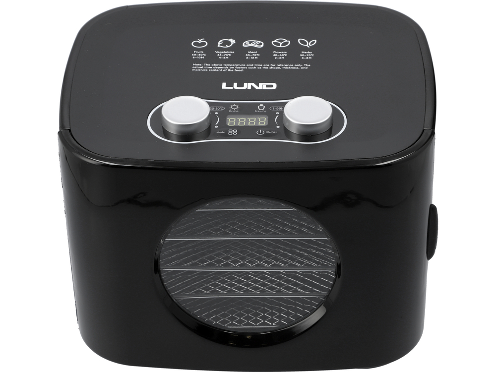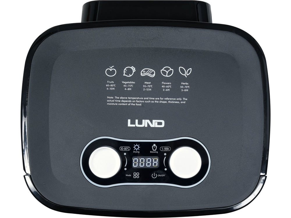 Uscător de alimente LUND cu o putere 300-340W conceput pentru uscarea produselor alimentare: fructe, legume, ciuperci, flori, ierburi, carne și pește. Vă permite să păstrați valorile nutriționale și gustative ale alimentelor, păstrându-le timp de câteva luni. Datorită cronometrului încorporat, este posibilă programarea uscării în intervalul 1-99 de ore.