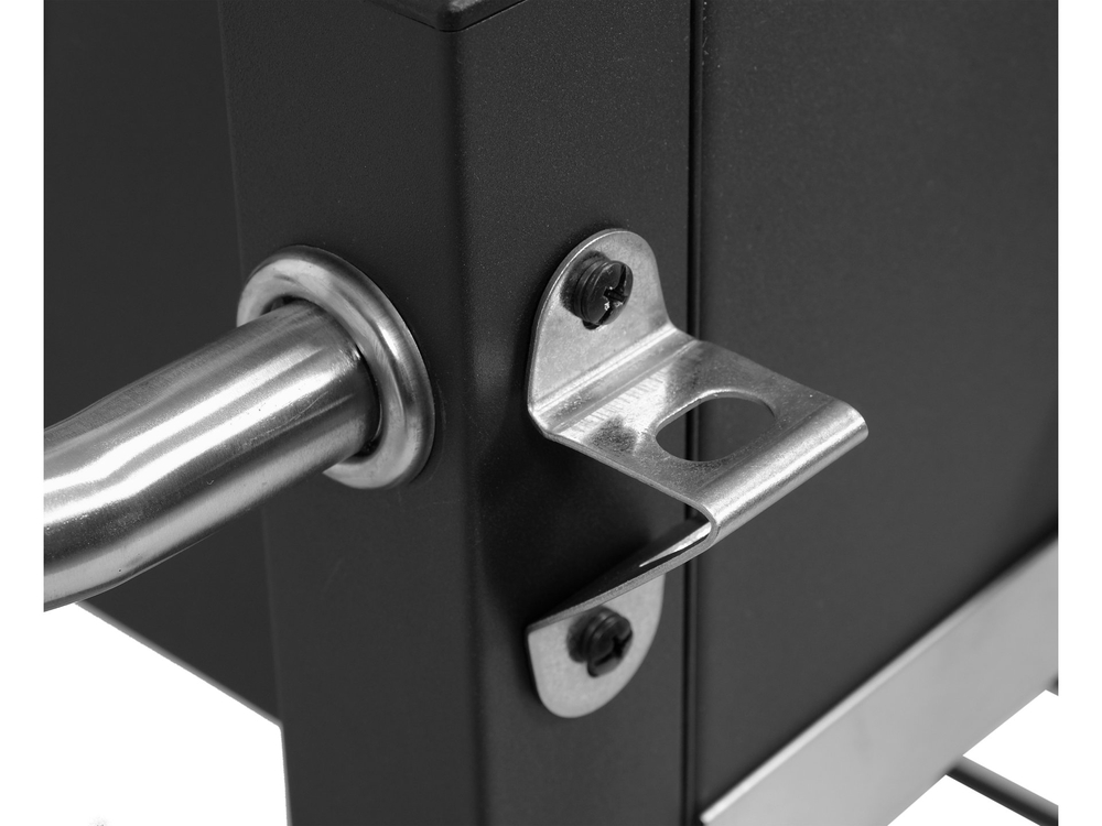 Construcție stabilă din tablă vopsită electrostatic în culoarea neagră. Grătarul vine însoțit de un set de instrucțiuni pentru asamblare și este ambalat într-o cutie de carton.