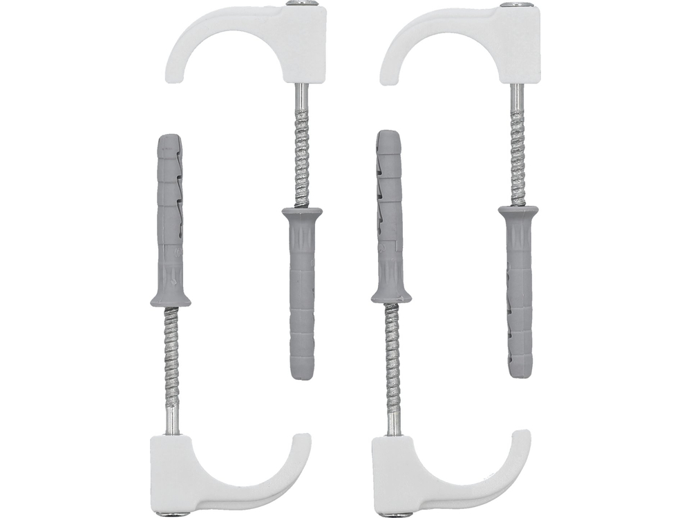 Cârlige simple pentru fixarea țevilor cu diametrul de 15-28 mm. Echipate cu un diblu de montaj pentru asamblare rapidă atașat ambalate în pachete de 4 buc. Cârlige pot fi folosite pentru țevile din cupru, oțel, plastic (PVC, PE, PE-X, PP, PB), mixt (PEX/A). /PEX, PP-R/A/PP, PEX/A/HDPE), pentru instalații electrice și PESCHEL precum și pentru conducte pneumatice. Se pot folosi la montajul instalatiilor in exterior si interior: apă si canalizare, gaze, pneumatice si electrice. Avantajul este asamblarea usoara si foarte rapida.