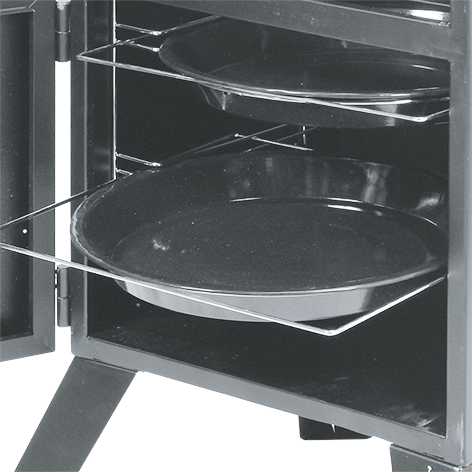 - 2 uși separate cu mânere pentru acces ușor și controlul focului și nivelul de fumat