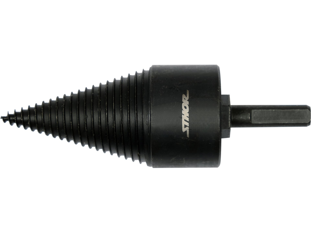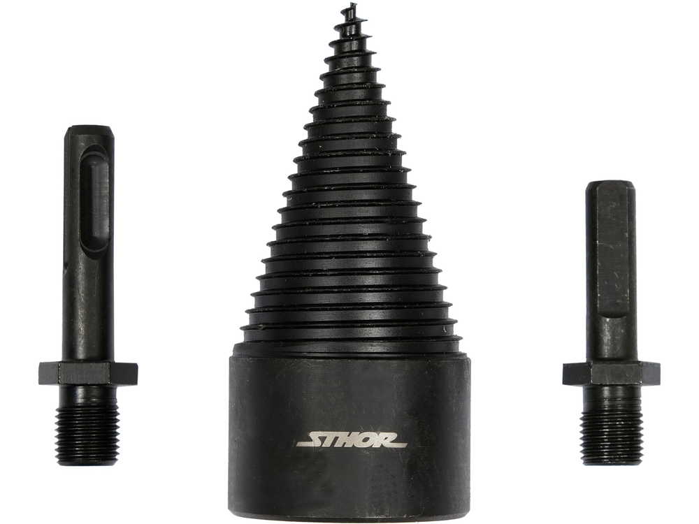 Burghiu pentru despicarea lemnului. Setul include un suport SDS Plus și un suport cu trei suprafețe plane.