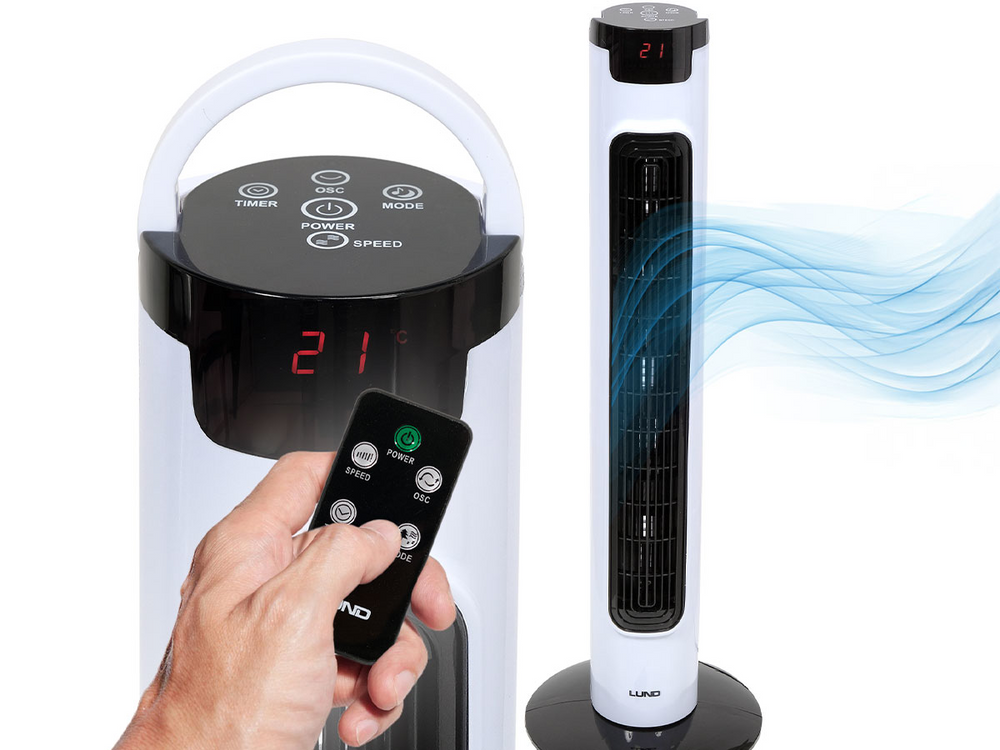Ventilator coloană cu o construcție subțire și un stil minimalist. Un afișaj LED clar facilitează controlul dispozitivului și oferă informații despre temperatura curentă a aerului din cameră. Pentru confortul utilizatorului, există trei moduri de funcționare: natural, normal, nocturn. Cronometrul (timer) permite oprirea automată după un anumit timp setat. Telecomanda inclusă în set permite schimbarea setărilor ventilatorului de la distanță.