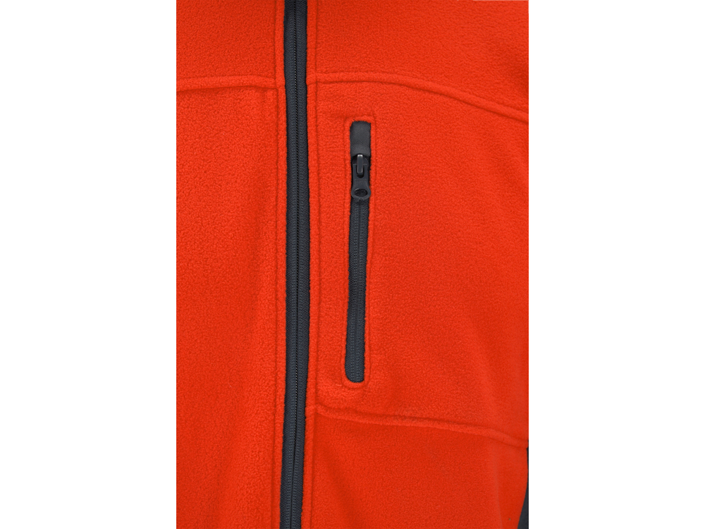Bluza polară cu design în două culori, cu trei buzunare, dintre care unul cu fermoar. Materialul principal este poliester rezistent, cu o structură caracteristică polarului, care menține eficient temperatura corpului, în special în zilele reci.