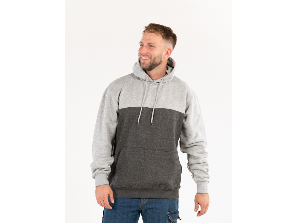 Bluza cu glugă cu o singură buzunar mare în zona taliei. Materialul este din bumbac gros și cald cu adaos de poliester. Bumbacul ca material natural este foarte plăcut la atingere, la această greutate oferă confort termic optim atât în primăvară, cât și în toamnă. Adaosul de poliester întărește fibra, îmbunătățind rezistența materialului la rupere. Imprimările speciale cu cerneală reflectorizantă îmbunătățesc vizibilitatea utilizatorului.