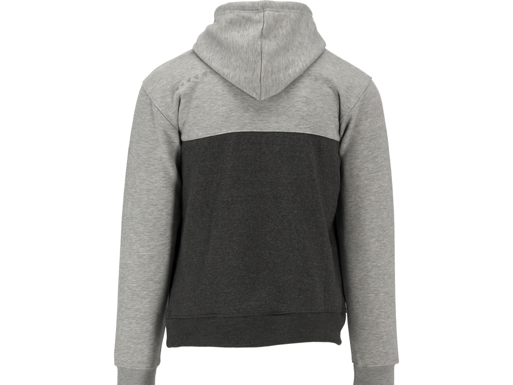 Bluza cu glugă cu o singură buzunar mare în zona taliei. Materialul este din bumbac gros și cald cu adaos de poliester. Bumbacul ca material natural este foarte plăcut la atingere, la această greutate oferă confort termic optim atât în primăvară, cât și în toamnă. Adaosul de poliester întărește fibra, îmbunătățind rezistența materialului la rupere. Imprimările speciale cu cerneală reflectorizantă îmbunătățesc vizibilitatea utilizatorului.