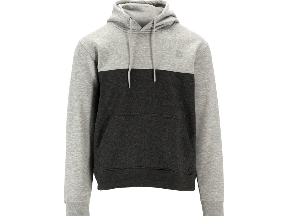 Bluza cu glugă cu o singură buzunar mare în zona taliei. Materialul este din bumbac gros și cald cu adaos de poliester. Bumbacul ca material natural este foarte plăcut la atingere, la această greutate oferă confort termic optim atât în primăvară, cât și în toamnă. Adaosul de poliester întărește fibra, îmbunătățind rezistența materialului la rupere. Imprimările speciale cu cerneală reflectorizantă îmbunătățesc vizibilitatea utilizatorului.