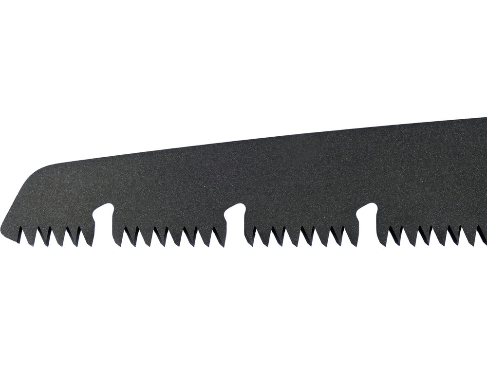 Fierăstrău fabricat din oțel SK5 cu conținut ridicat de carbon. Dinții ferăstrăului sunt căliți prin inducție și ascuțiți pe trei laturi. Acest lucru permite fierăstrăului să taie în ambele direcții. Lama acoperita cu PTFE. Mânerul este acoperit cu material TPR cauciucat pentru a facilita o prindere fermă. Lamă detașabilă. Ferăstrăul vine cu un toc.