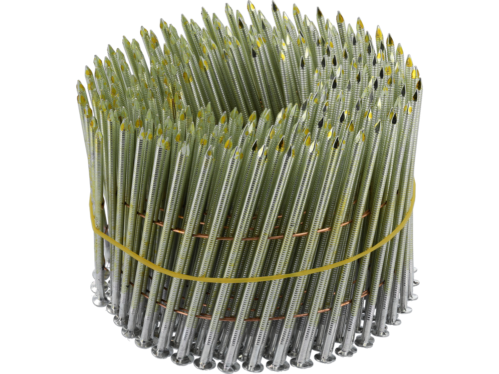 Cuie tambur galvanizate conectate cu sârmă la un unghi de 15° - 16°. Cel mai adesea folosit la acoperișuri, la conectarea elementelor din lemn, în special acolo unde cuiul poate fi expus condițiilor meteorologice. Galvanizarea reduce riscul de ruginire.