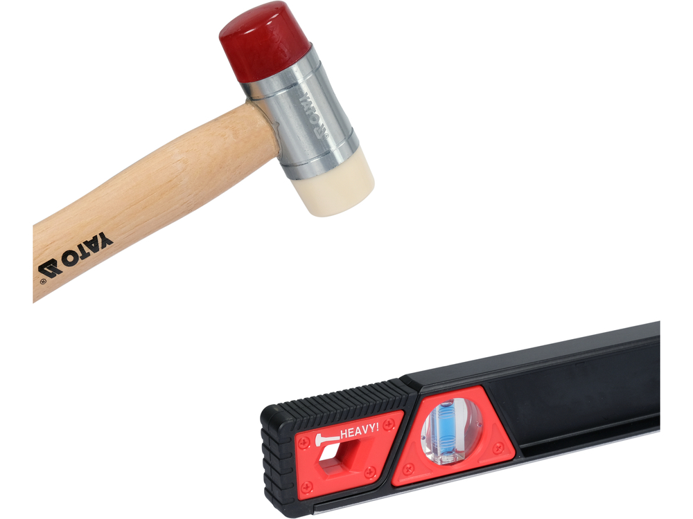 Nivelă din aluminiu rezistentă și rezistentă la șocuri. Cele două mânere mari facilitează efectuarea măsurătorilor. Capetele nivelatorului, protejate cu amortizoare elastice rezistente la impact, permit lovitura cu ciocanul. Nivelatorul este echipat cu trei libele: verticală, orizontală, 45 de grade. În baza frezată sunt plasate 5 magneți.