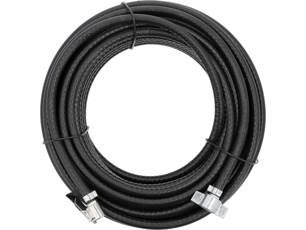 Furtun de aer comprimat profesional, flexibil, compatibil cu vehiculele cu compresor de aer. Permite umflarea tuturor roților chiar și în cazul unui vehicul foarte lung. Furtun prevăzut cu conectori pe ambele părți, într-o parte un varf fluture cu filet interior M16x1,5 mm, compatibil compresoarelor auto, iar în celaltă parte, un conector adaptat unei supape standard de mașină. Furtunul este format din trei straturi. Partea interioară este realizată din PVC moale și o împletitură densă din poliester de întărire textilă. Strat exterior din PVC rezistent la intemperii.