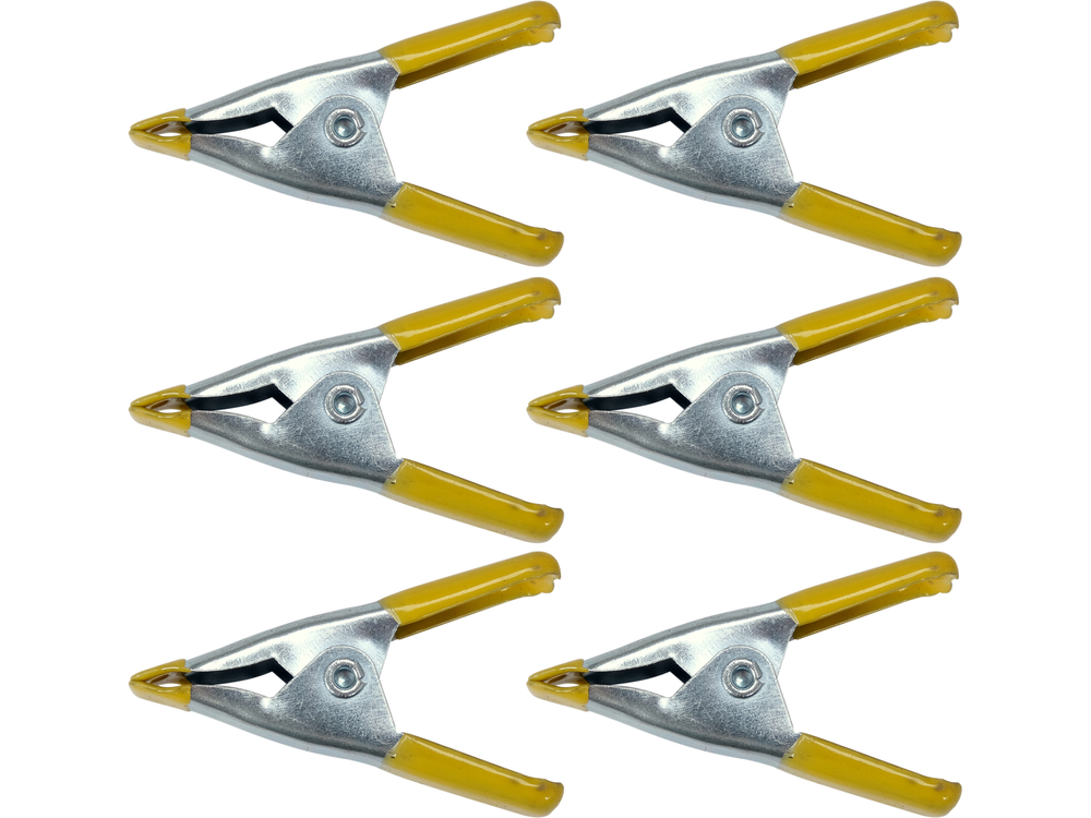 Arcuri de strângere realizate din tablă de oțel galvanizată. Mânerele și capetele de lucru sunt acoperite cu vinil galben.