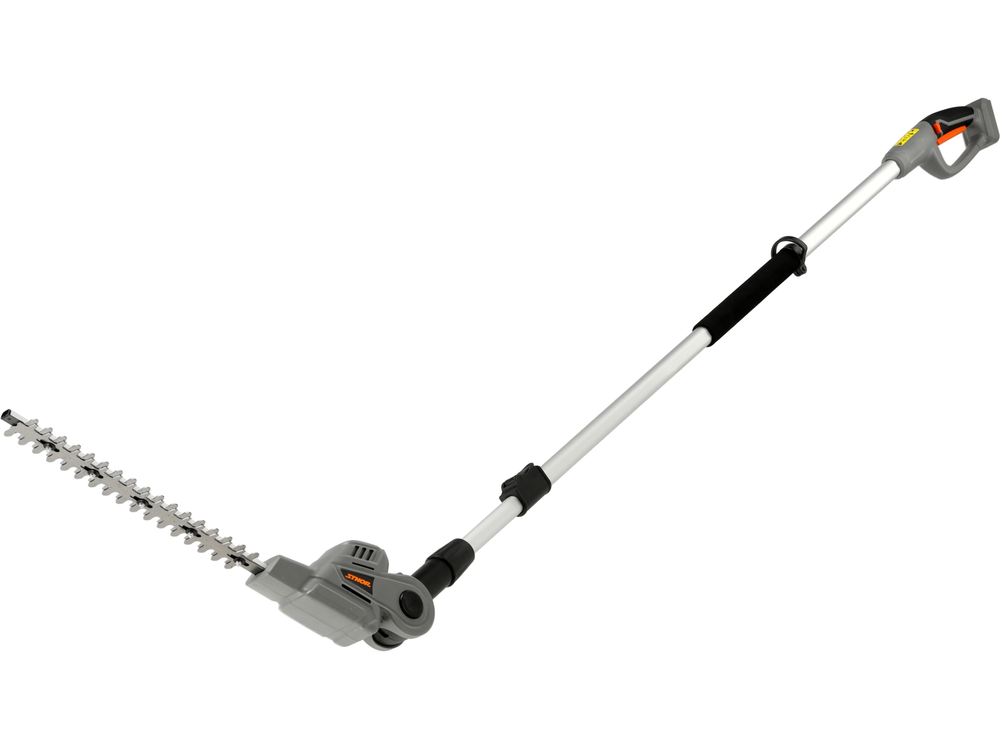 Foarfeca telescopică pentru gard viu cu rază mare de acțiune permite modelarea ușoară a gardurilor vii înalte și late și lucru confortabil de la distanță, fără a deteriora grădinile de flori. Unghiul reglabil al capului permite darea unei geometrii ideale arbuștilor. Datorită mânerului telescopic, foarfeca este mai ușor de transportat și depozitat. Mânerul antiderapant permite o prindere sigură în timpul lucrului. Foarfeca este alimentată de o baterie compatibilă cu seria de dispozitive de 20 V Sthor.