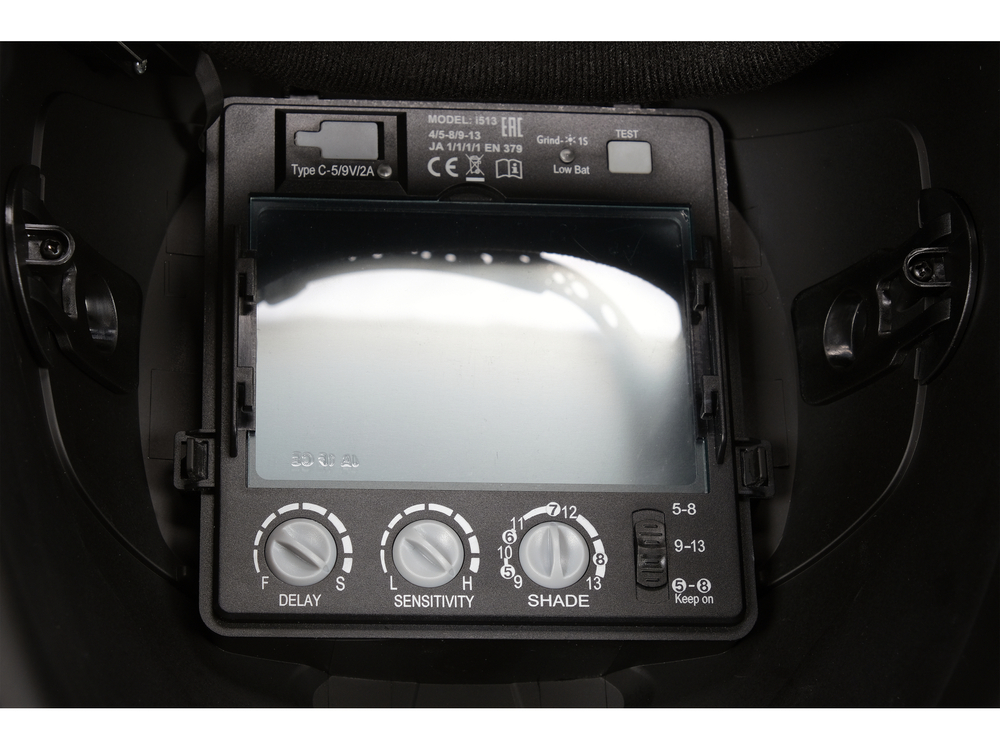 Mașca are o reglare continuă a gradului de întunecare, reglarea sensibilității la intensitatea luminii și reglarea timpului de menținere a stării întunecate după terminarea sudurii. Un buton pe carcasa exterioară dezactivează funcția de întunecare. În acest caz, casca poate fi folosită ca mijloc de protecție individuală împotriva scânteilor de la tăiere sau rectificare metalului. Cureaua cu patru puncte, buretele, sistemul de reglare a dimensiunii și unghiurilor de lucru permit ajustarea poziției căștii la cerințele individuale și la confortul de lucru.