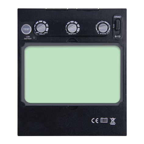 Capul de sudur are reglare continuă a gradului de întunecare, sensibilitate la intensitatea luminii sursei de lumină și timpul de menținere a stării întunecate după încheierea sudurii. Butonul de pe filtru dezactivează funcția de întunecare, astfel încât să puteți folosi casca ca mijloc de protecție individuală împotriva scânteilor din tăiere sau măcinare de metal. Cureaua cu patru puncte de sprijin, buretele, sistemul de reglare a dimensiunii și unghiurilor de lucru garantează un confort ridicat și adaptarea poziției căștii la cerințele individuale.