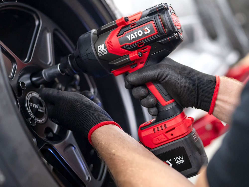 Cea mai puternică cheie de impact cu acumulator din oferta YATO. Motorul său fără perii oferă o putere de 2.400 Nm, permițându-vă să înlocuiți roțile camioanelor, autobuzelor și să lucrați la utililaje de construcții și agricole. Cheia va fi utilă la asamblarea structurilor, halelor din oțel, barierelor de absorbție a energiei și stâlpilor de iluminat. Frâna cu ax protejează utilizatorul dacă cheia este blocată. Utilizatorii vor aprecia rezistenta structurii, elementele bine adaptate și ergonomia. Instrumentul vine cu un adaptor de 3/4 la 1/2 inch.