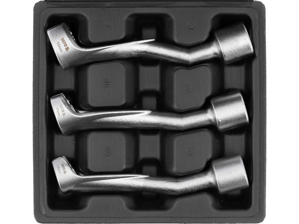 Setul de trei chei în mărime de 1/2" inch pentru injectoare de combustibil și pompe de injecție. Cheile sunt fabricate din oțel crom-vanadiu de înaltă calitate. Setul este destinat pentru utilizare la mașinile de marcă BMW, VW, Mercedes-Benz.
