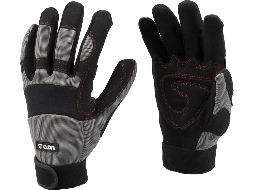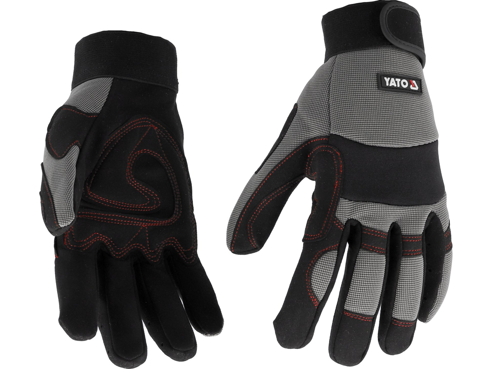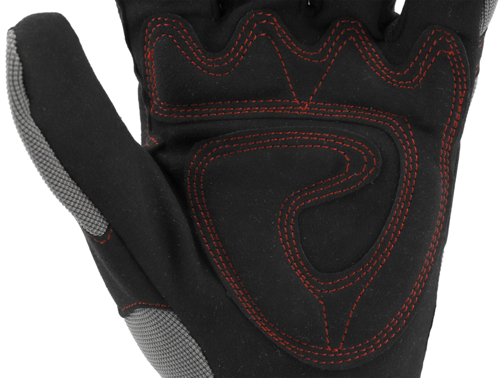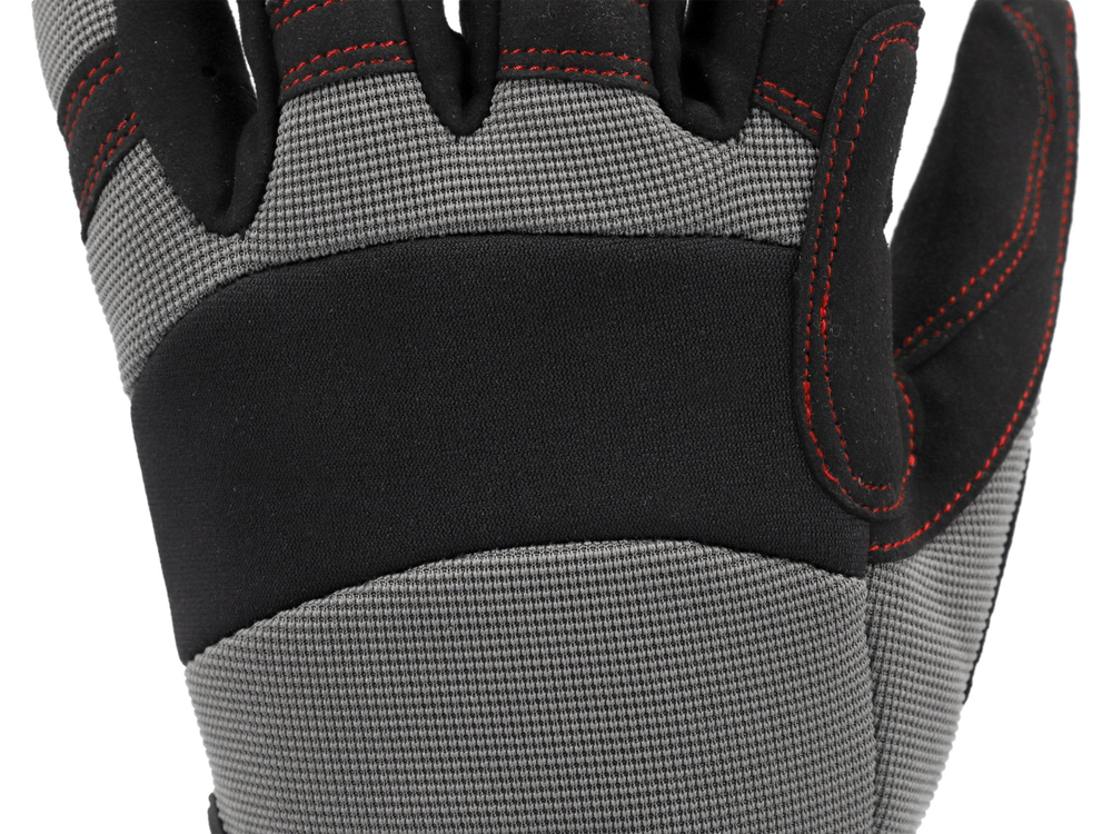 Mănuși de lucru cu întărituri suplimentare recomandate pentru lucrul cu unelte manuale, unelte electrice cu impact sau, de exemplu, în timpul montării pavelelor.