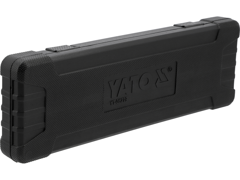 nasadka x7 (3/8”: 13mm, 14mm, 15mm, 16mm, 17mm, 18mm, 19mm, L= 26mm), nasadka płaska specjalna x3 (3/8": 13mm, 14mm, 15mm), klucz płasko-oczkowy z grzechotką 7/8" x 19mm,
