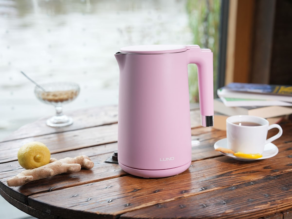 Fierbător electric cu o capacitate de 1,5 litri. Forma minimalistă și culoarea uni, fac ca fierbătorul să se potrivească perfect într-un interior modern. Carcasa este formată din pereți dubli. Peretele interior și capacul sunt din oțel inoxidabil, iar partea exterioară este acoperită cu o carcasă colorată din polipropilenă. Caracteristicile suplimentare de siguranță, cum ar fi oprirea automată și protecția împotriva supraîncălzirii, măresc siguranța. Deschiderea mare facilitează turnarea apei, iar filtrul de plasă detașabil menține apa curată.
