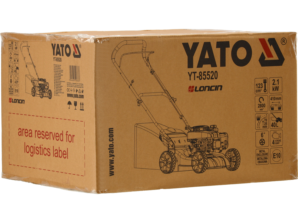 Mașină de tuns iarba pe benzină echipată cu motor LONCIN de 123 cm3, care asigură putere și eficiență ridicate. Lățimea de lucru de 41 cm și structura stabilă facilitează tunderea gazonului în zone mai înguste, denivelate și solicitante, de exemplu, pe pante, de-a lungul potecilor și a paturilor de flori sau lângă plantații. Înălțimea de tăiere poate fi reglată cu ușurință cu ajutorul pârghiei pe 7 niveluri în intervalul 25-75 mm.